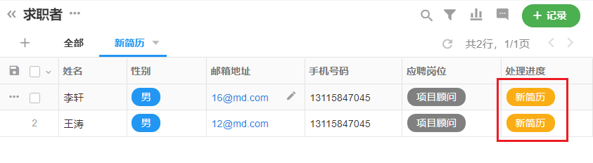 | 招聘主管可以管理所有的求职者信息 | 创建不同状态的视图 | |