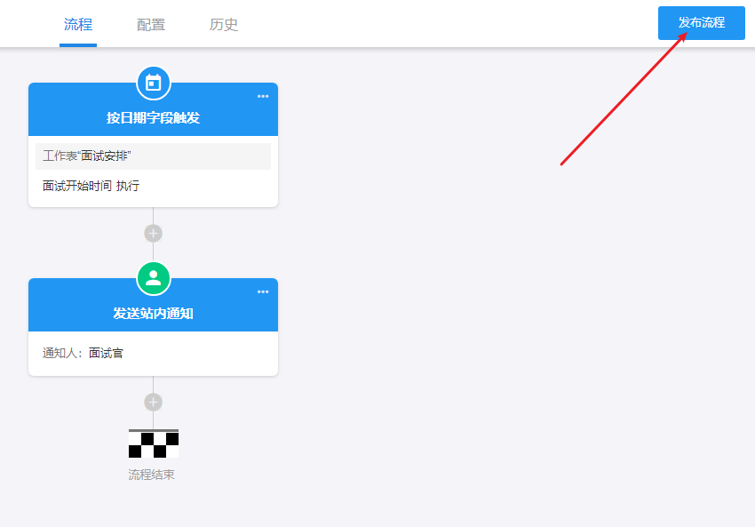 这种效果就是:会把表中所有的面试开始时间提取出来组成一个时间列表。每到一个时间,就会触发流程。