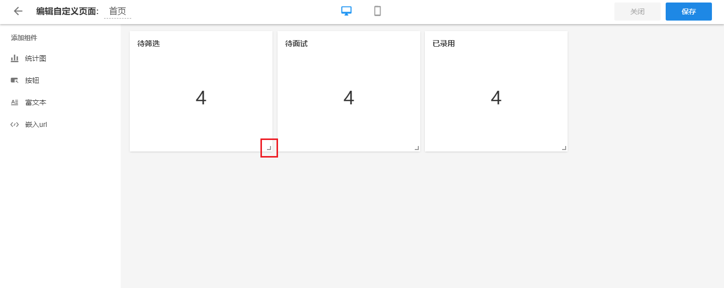 在招聘管理应用我们,我们做一个自定义页面,来显示多种统计图表。如:待处理的数量、待面试数量等等。
